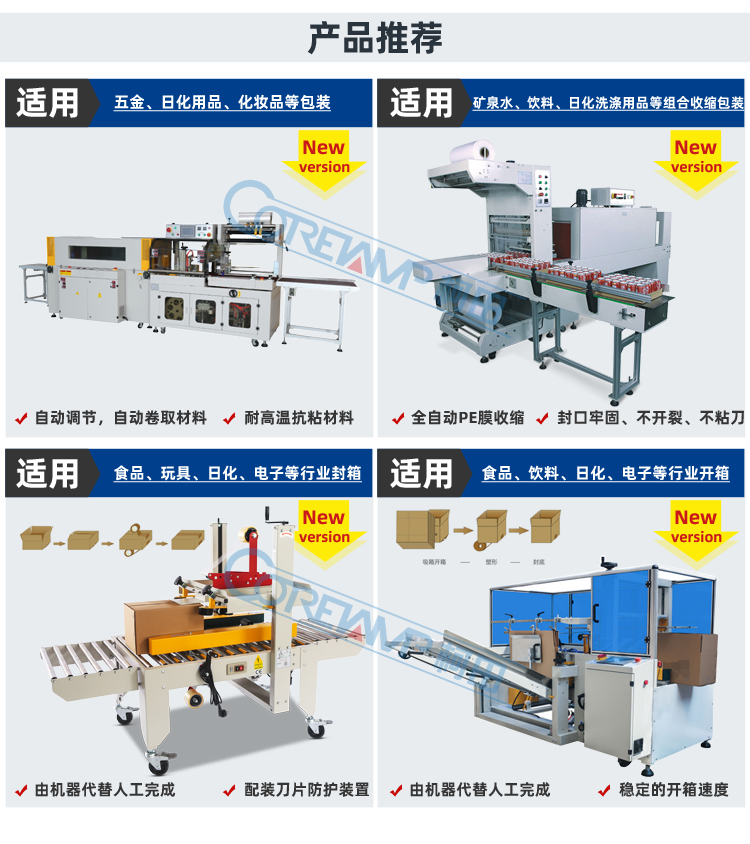 - 全自动中款喷胶装盒机,集开盒、装盒、折盒、封盒为一体、设计紧凑合理、操作简单、维护保养方便。采用PLC可编程控制系统、人机界面各项参数。同台设备规定范围内可通过表盘刻度快速调节,实现多规格使用。传动与摩擦部件后期磨损少,减少配件更换。可选配热熔胶机,采用热熔胶喷胶封盒。 本设备能前后追加自动送料/自动下托/说明书/打印字码流水号/剔废等功能。可单独使用,也可在前后与其它设备,如理料机/机械手/三维包装机/枕式包装机/立式袋包机/组装机/自动灌装机/贴标机/喷码机等各类机械设备连接实现联动使用。